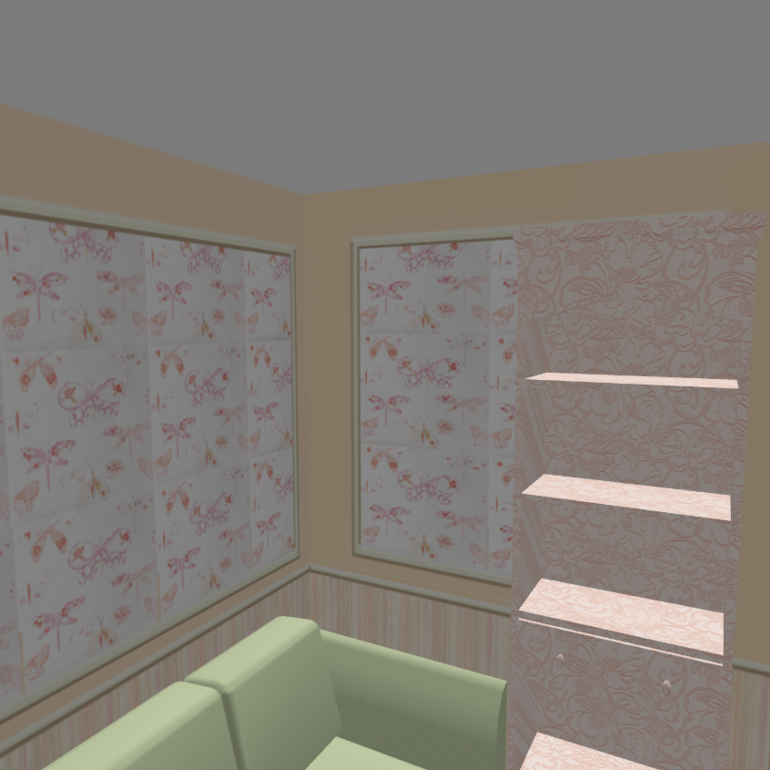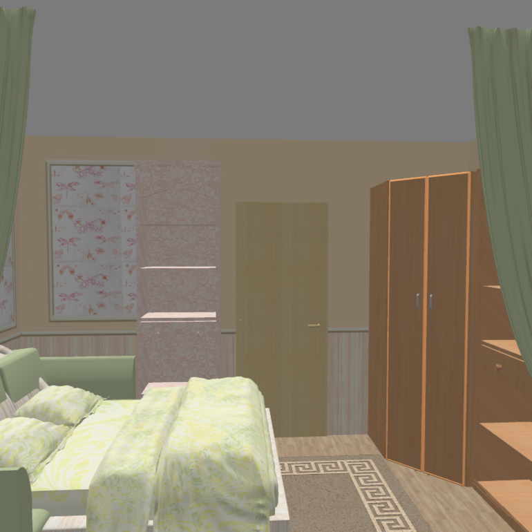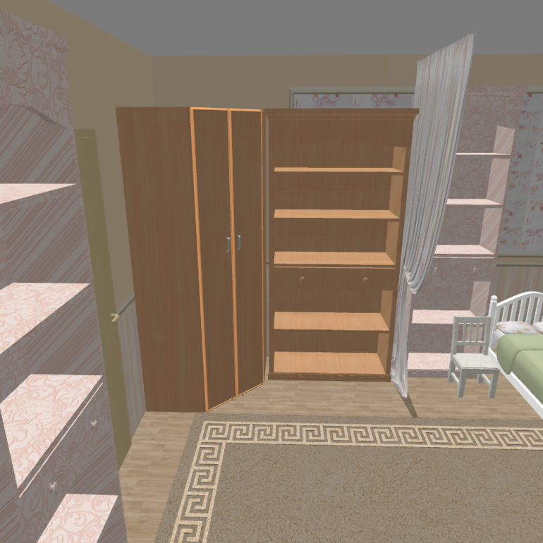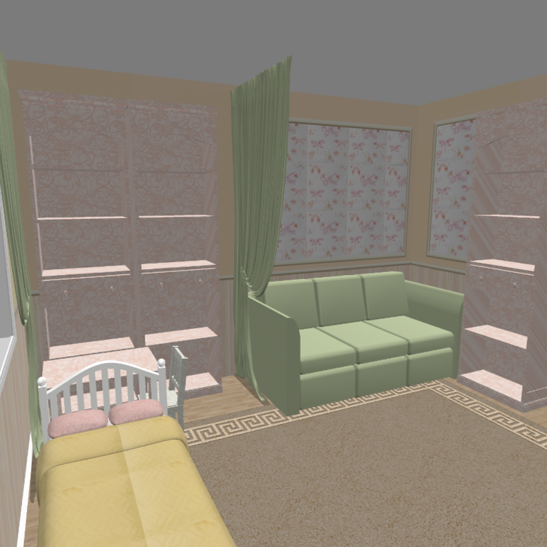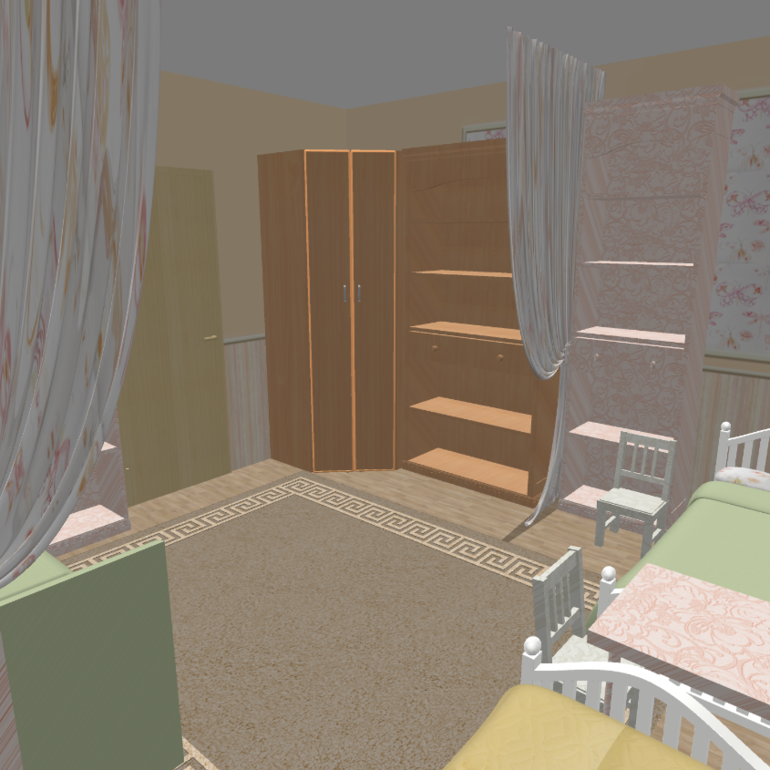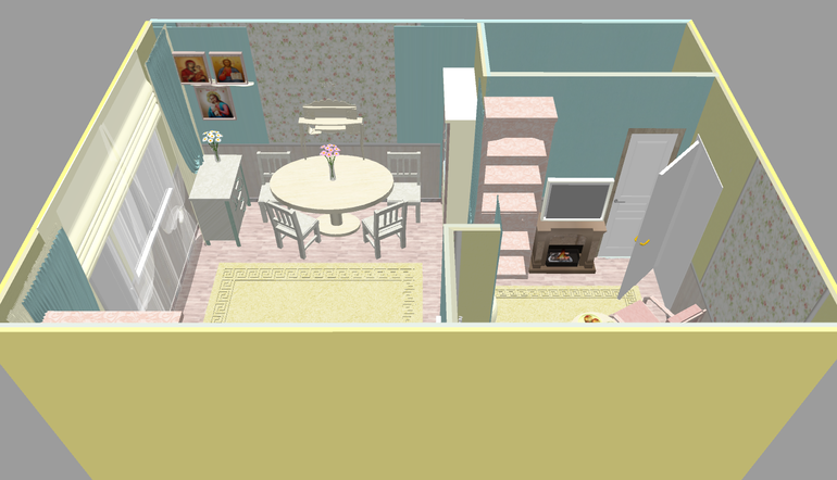 На стене все хочу вставки с обоями, так же как в большой комнате мы делали.. поэтому рисую их под разные планировки. Здесь "уехали" они, не поменяла в программе под эту планировку..