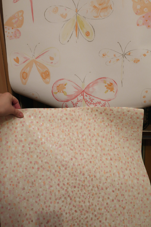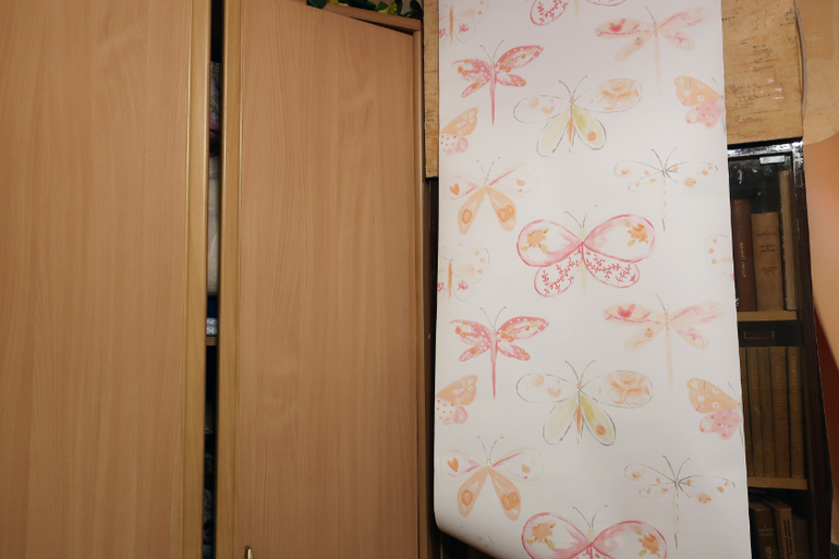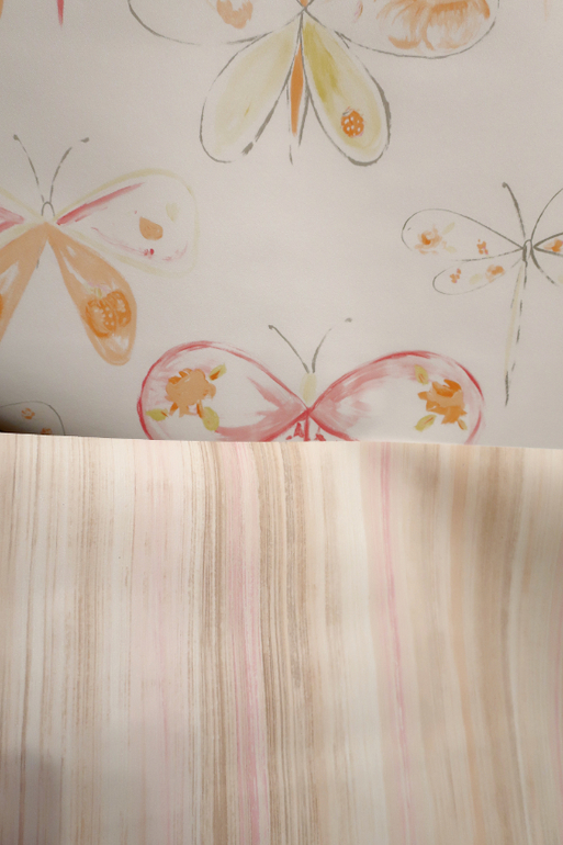 Вот "живые фото" обоев: на низ планирую полосатые обои. Потом молдинг (деревянный, простой совсем) и на однотонном сливочно желтом фоне бабочки..