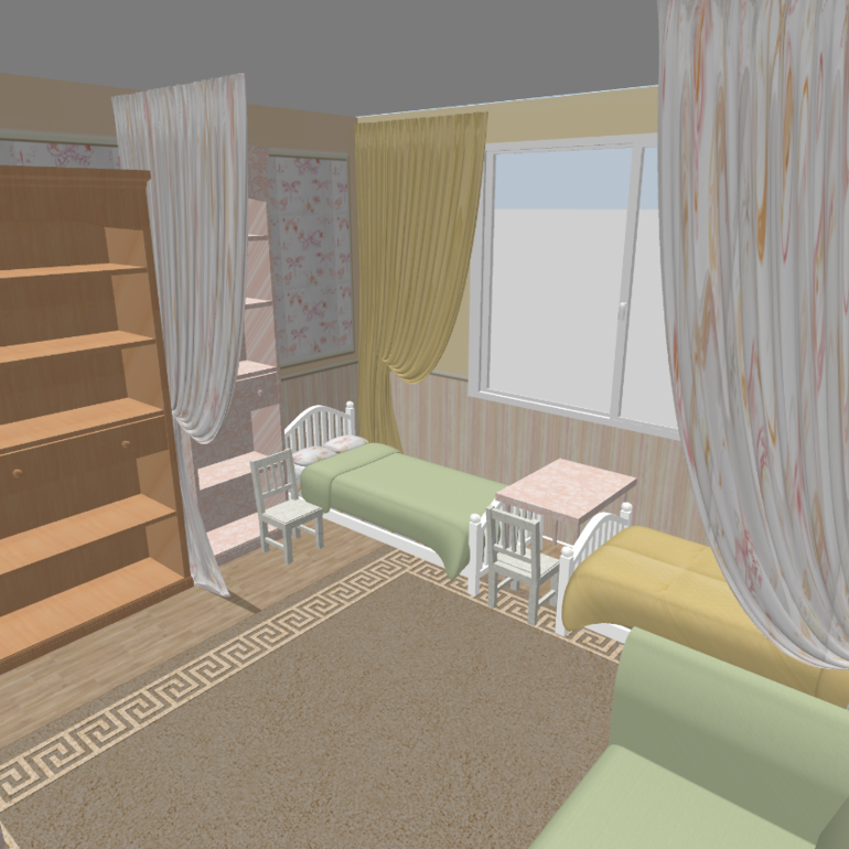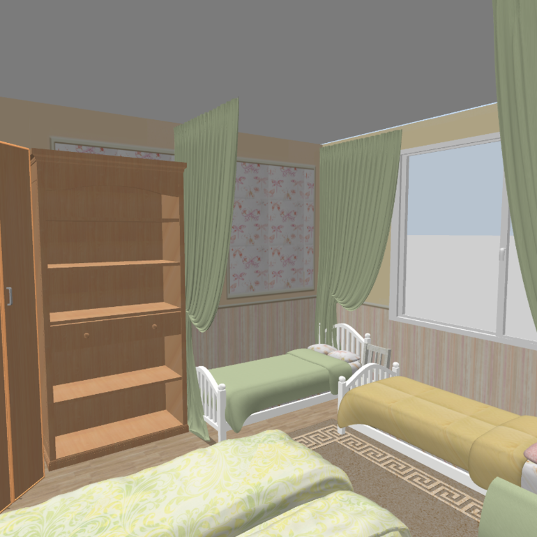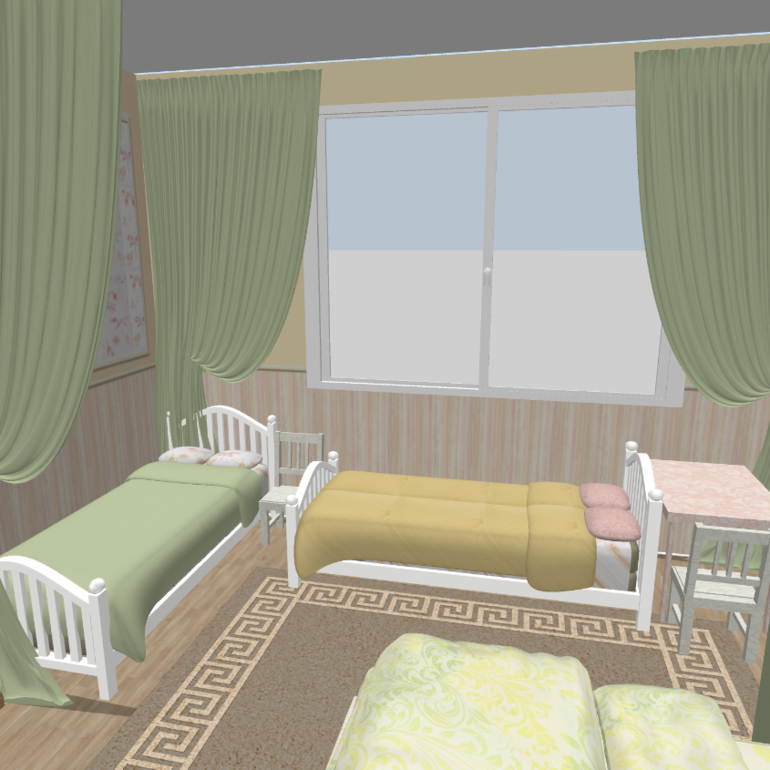 Назначение: спальня. Только сон и "ничего личного". Игры, занятия с детьми и т.д. - все в другой "общей" комнате.