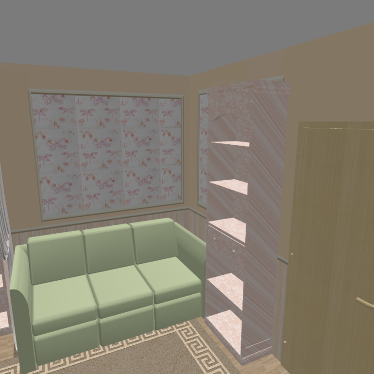 При таком варианте дверь в комнату не открывается до конца при разложенном диване, но это не критично).