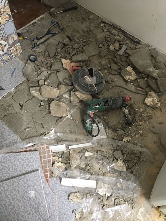 Вот фотка- пол переделывала. Таких много было, поудаляла. Но, там косяк на косяке был. Она одна, без мужа делала, вот они глядя на ее беззащитность и крутили ее на бабки и переделки