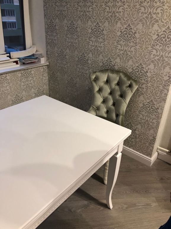 Красивый стол. Такой в классическом стиле, но лаконичный. Ничего лишнего. А стулья... отпад. Цвет настолько интересный в этом исполнении. Как бы это выразиться, такой глубокий, но не избитый.