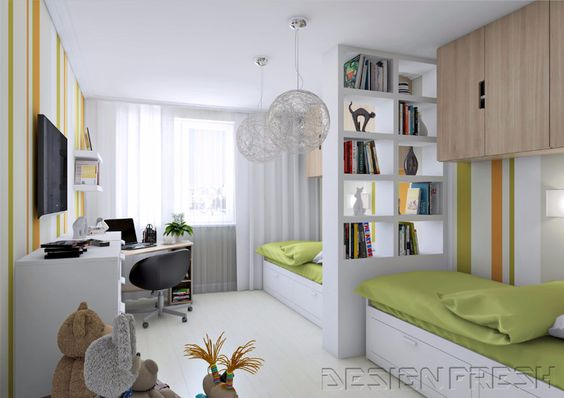 сейчас мои мальчишки уже года три вдвоем в комнате на двух отдельных кроватях, все довольны. мне удобно менять постельное белье, прибирать постели и безопасно с точки зрения третьего подрастающего