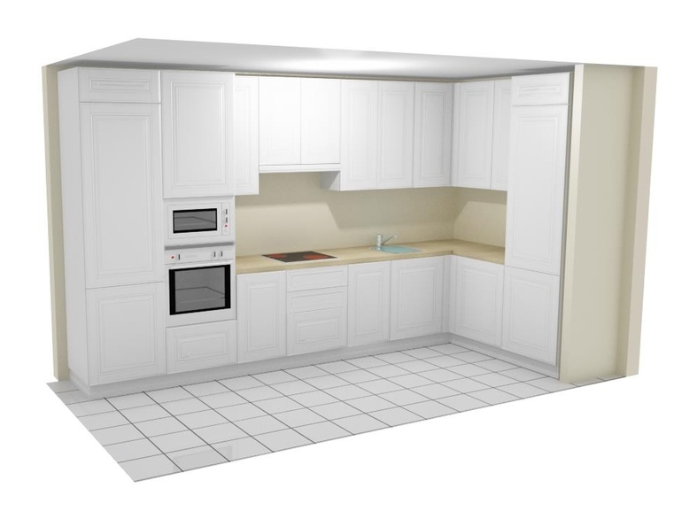 Кухня г-образная. 412см по длинной стороне и 211 по короткой.