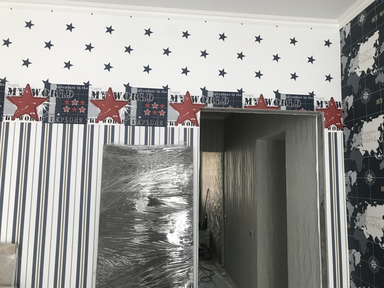 Нарисовала себе два варианта, какой вам больше нравится? Я склоняюсь к картам, муж хочет вообще какие-то простые без рисунка. И еще, подскажите, пожалуйста, чем можно отделить центральную часть, молдинг какой-то наклеить?