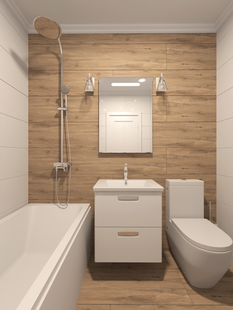 Добавьте белой плитки на стены и будет сочетаться с белой мебелью и дверьми. Посмотрите в инете санузлы в эко стиле.