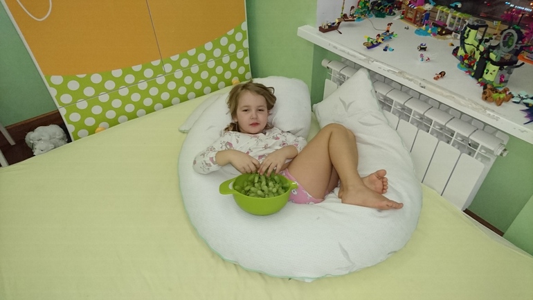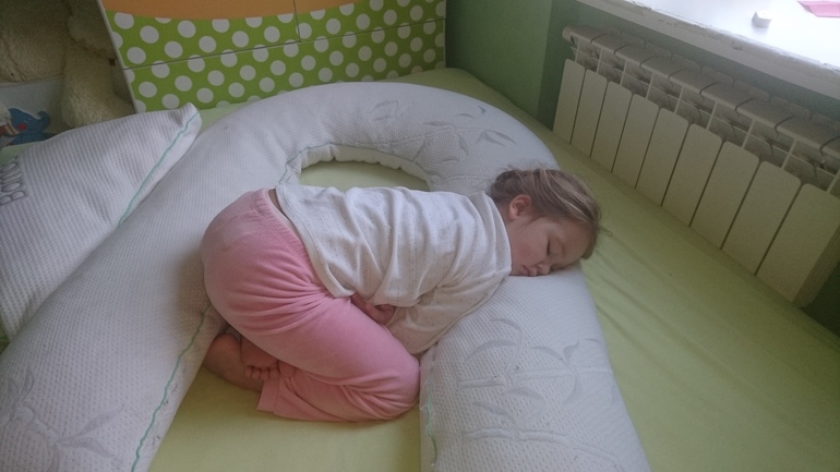 Алиса спит "в гнезде" на матрасе)). Так же как и я обажает U-образную подушку)))