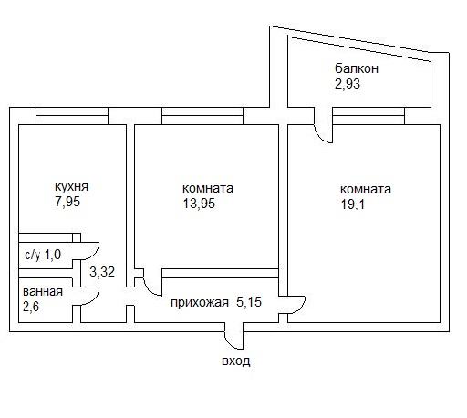 И да, я в день пару раз пылесос включаю-5 мин. делов.Пол протираю летом каждый день= 15 мин. Квартирка то маленькая))) Планировка почти такая же как на картинке,только вход напротив кухни.