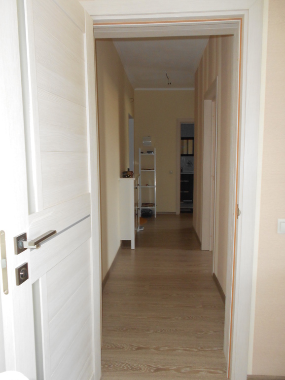 Сейчас нет как таковой прихожей - длинный коридор такой же как у вас, все разуваются тоже в пределах коврика +/- полметра