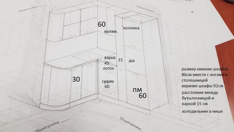 не нужно извиняться! Я сама с третьей попытке разобралась где у автора что))) Особенно в этом чертеже от "дизайнера": раковина не так близко, там расстояние не такое.