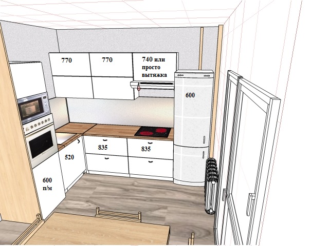 Тогда мне не понятно, зачем радиусные шкафы (возле холодильника получается, верно?), раз там всё равно никто не ходит