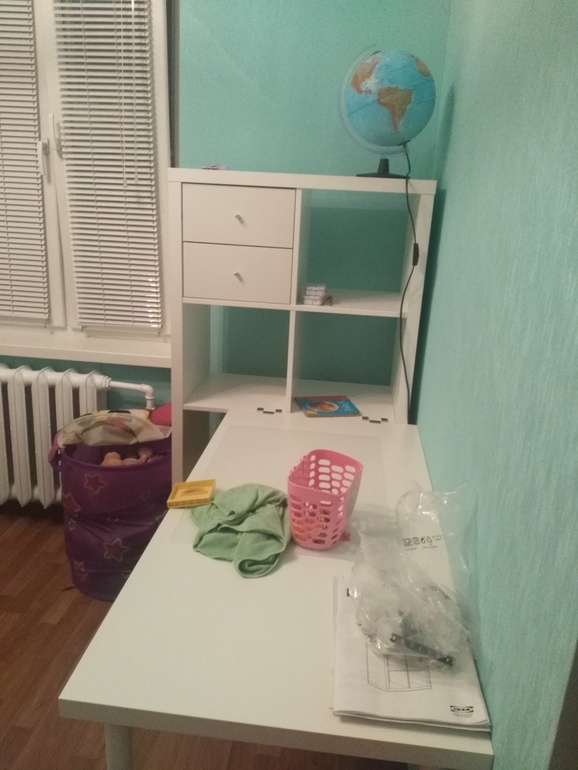 Слева стоии только этажерка икеевская с игрушками и более ничего. Основная одежда старшей живет в шкафу в зале...