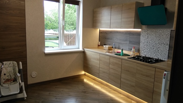 Спасибо большое! Муж кухню сам собирал с отцом, выпиливали все, подгонял! Мозаику тоже он придумал наклеить и сам клеил!