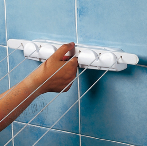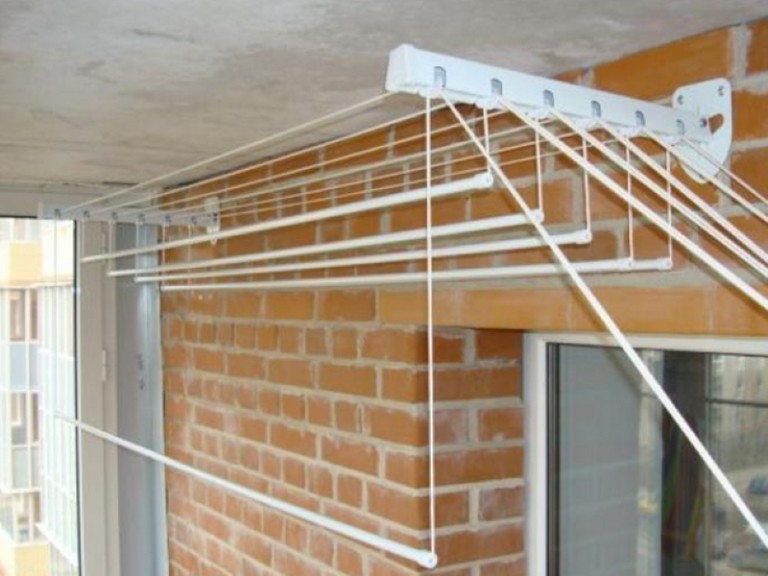 Лиану попробовать можно. К потолку крепится, палки могут опускаться,для того чтобы повесить белье,потом подниматься к потолку. Удобная штука.