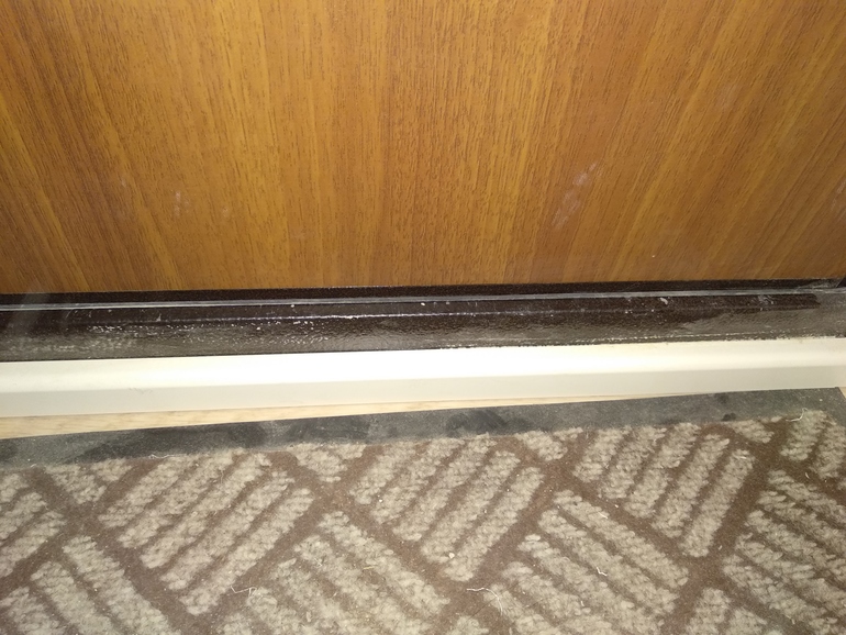 А под входной дверью установщик дверей приделал планку (остался кусок после установки межкомнатных дверей)