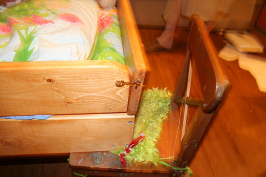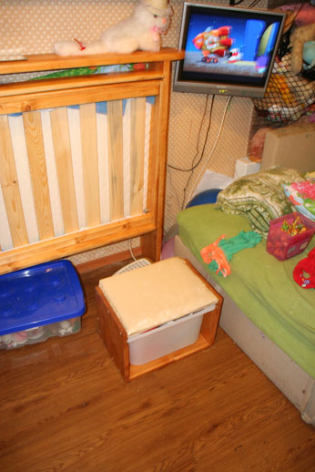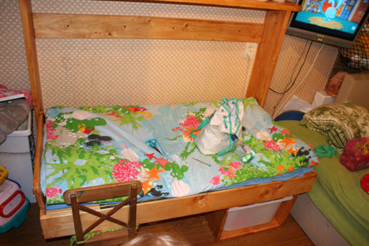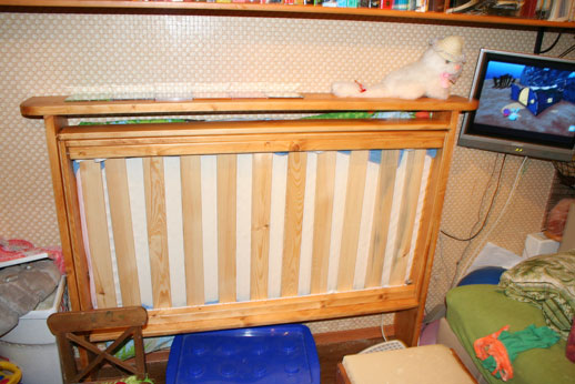 Самодельная откидная кроватка маленького размера.
