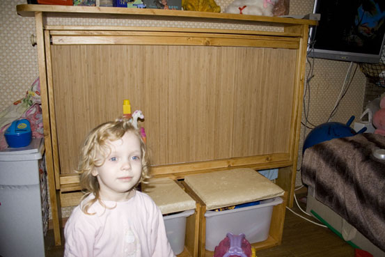 сестра с мужем-военным долгое время жили в комнате 8 квадратов. Старшая дочь спала на верхнем ярусе кровати, внизу под кроватью стоял диван, где спали родители с младшей.