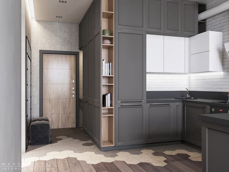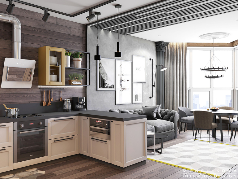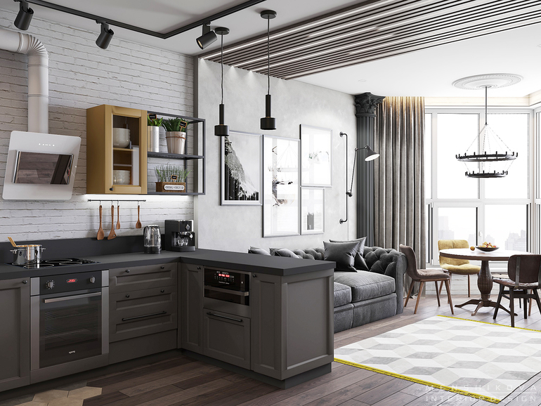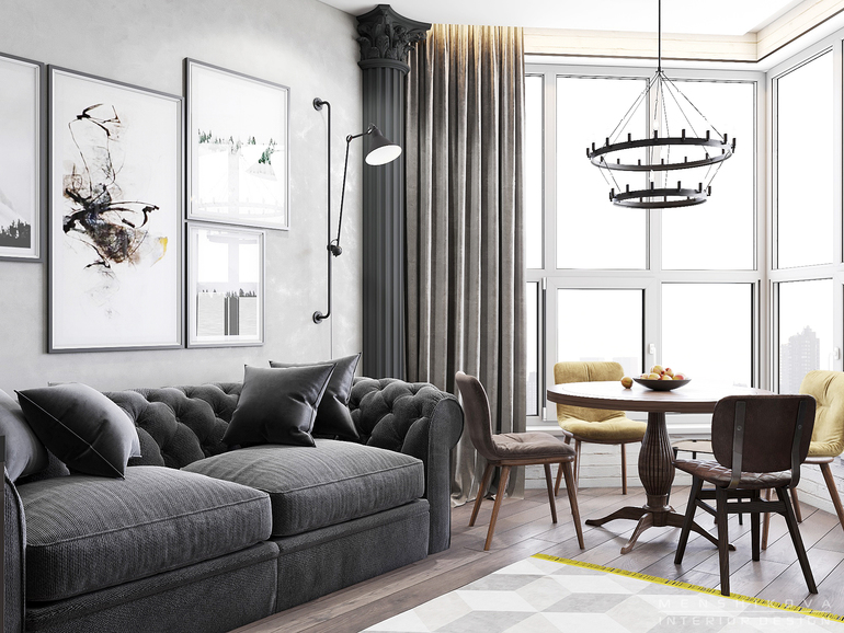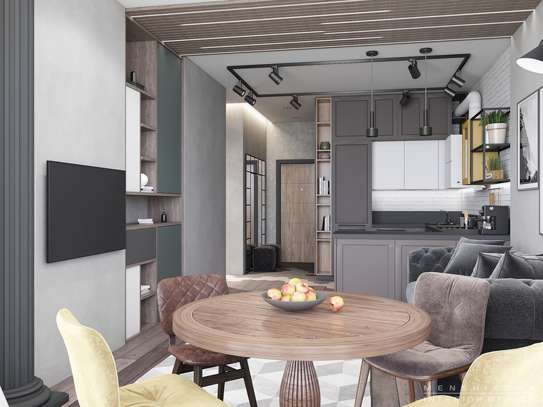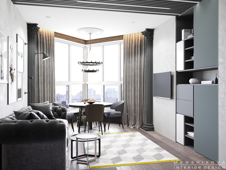 У заказчиков немного отличались представления о своей будущей квартире , муж хотел видеть интерьер более брутальным,что-то в стиле Loft, жена наоборот видела интерьер более уютным с элементами неоклассики, но в чем они были похожи это наличие дерева в интерьере. И тут была моя задача найти компромисс, чтобы будущий интерьер нравился и жене и мужу. Вообщем это удалось и ниже результат работы который понравился всем )