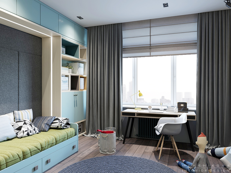 В недавнем времени закончила работать над еще одним проектом - апартаменты для молодой семьи состоящей из трех человек .