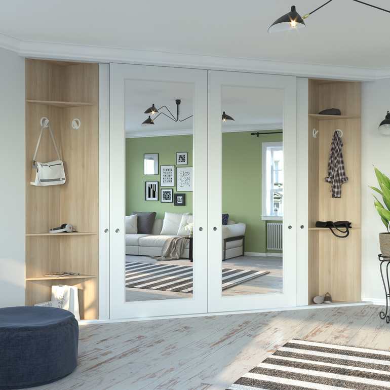 я просто в прихожей хотела отделить тоже кусок шкафом-купе, а потом меня в салоне оч грамотно убедили, что шкафы распашные лучше, места останется больше, а влезет тоже немало! я оооооч довольна!!