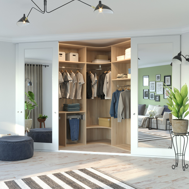 ну просто надо быть готовыми что это не будет как на картинке (где ширина метра по три с каждой стороны) даже близко, а горааааздо меньше!! подумайте, может гораздо целесообразней поставить распашные шкафы вдоль всего угла!