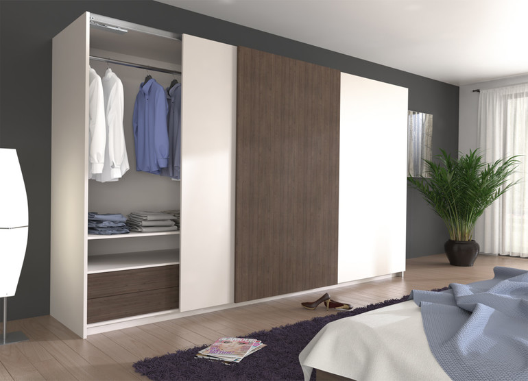 видела вариант, когда вместо дверей - рулонные шторы просто ) чтобы по максимуму полезное пространство. Если еще рулонки прикрепить как-то по типу купейных створок )))