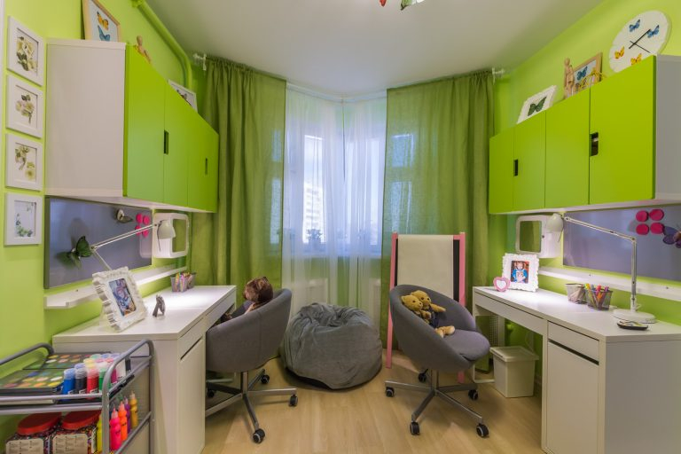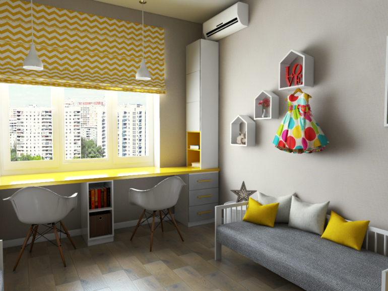 Интерьерное решение детской комнатыПро кровати в детскую я с вами поболтала (кстати, всем откликнувшимся спасибо, сделала много выводов, в голове все прояснилось, как дойдет до реализации - покажу). Теперь про учебную зону на перспективу. Через год в наличии будет одна первоклассница и одна трехлетка.