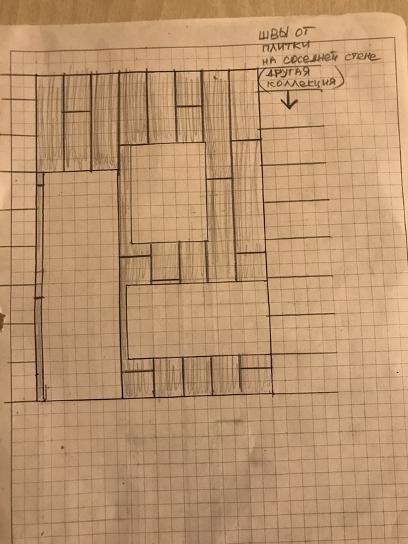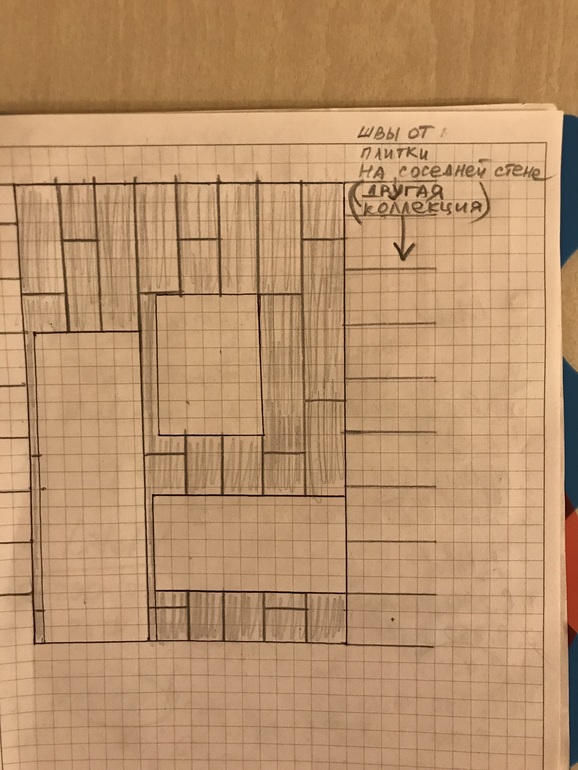 P.s.: раскладку старалась подобрать ещё таким образом чтобы швы italon не совпадали с межплиточными швами на соседней стене, т.к. они все равно не совпадут идеально, будет разница в несколько миллиметров (пробовали разложить с мастером, не понравилось).