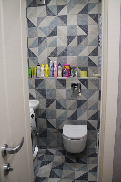 Здорово получилось, освежает очень) Нам кстати точно такую же плитку с голубым предлагали сначала, там же типа имитируется 2 плиточки, а на самом деле одна) я побоялась что будет бросаться в глаза то что швы не вокруг каждого треугольничка, а как бы вокруг двух (или четырёх? - не помню уже) сразу, хотелось избежать какой-то имитации, типа раз пэчворк значит до конца уже, но глядя на Ваши фото, могу сделать вывод что зря так думала, все-таки очень хорошо смотрится! красиво у Вас! 🙂