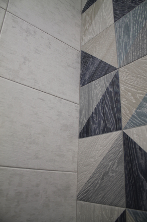 Сама плитка под дерево, Italon 90*22,5; вся из одной партии, отличий по цвету, разнотона практически нет.Такой же плиткой будет выделен пол. Все остальные стены нейтральные (белые).