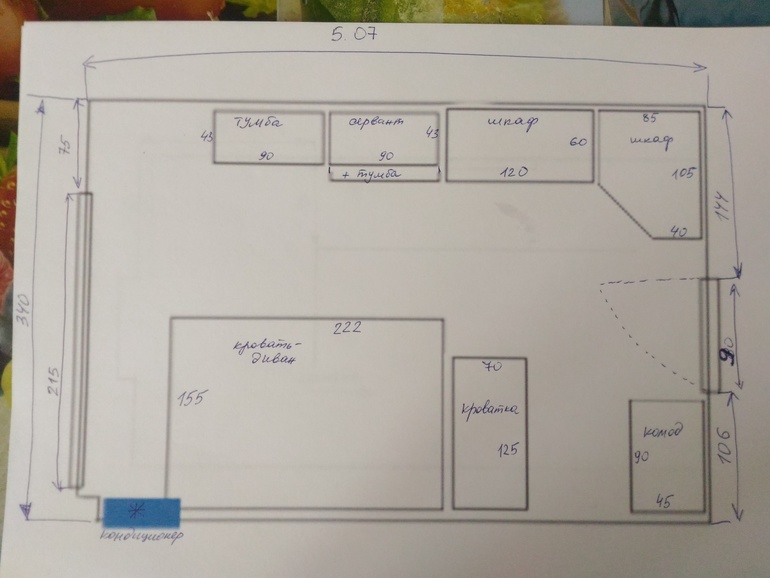 В угол напротив кондея не хотелось бы ставить кровати никакие.