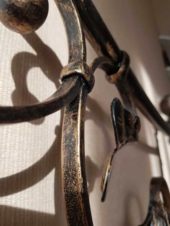 тут ковка не сильно в глаза бросается.только каркас бы я сделала под цвет кровати