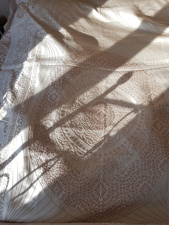 И подушки на кровать из такого же материала. Еще рекомендую валик, чтобы подушки не заваливались. А занавески для балдахина такие же прозрачные можно цвета какао, сиреневого, тыквенного.
