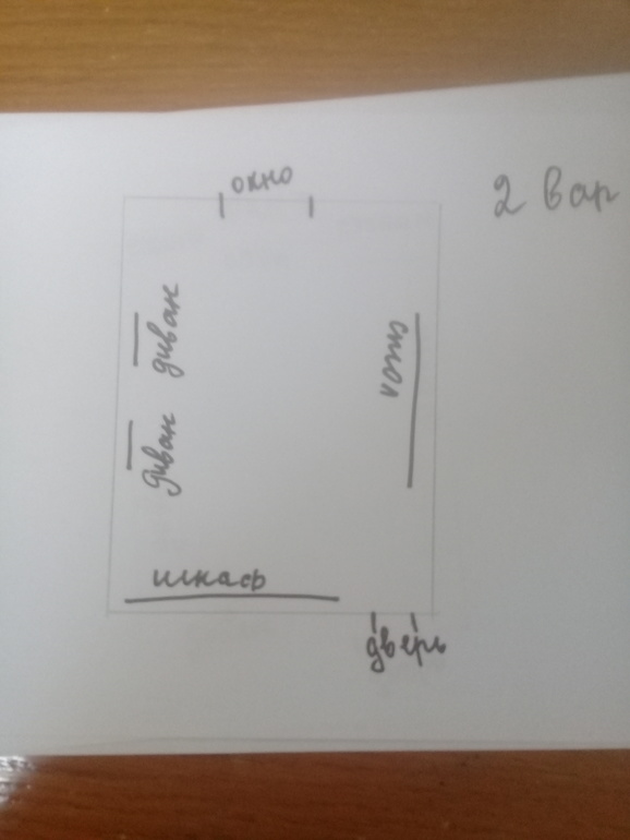 У меня комната 14 м. двух мальчиков, расположение мебели как на первом рисунке, только стол во всю длину, шкаф к стене за дверью вместился, потом комод, над ним телевизор и навесные полки, еще стеллаж для книг, вместо диванов кровати впритык буквой г