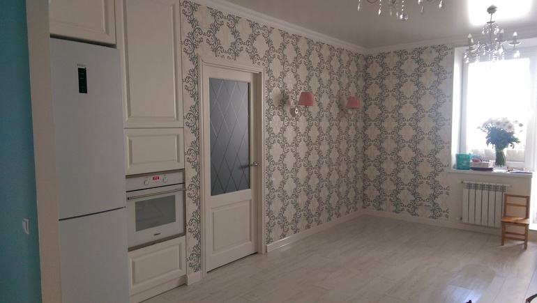 Вот в углу под бра будет диван. Расстояние от угла до наличника 245 см. Вот что напротив