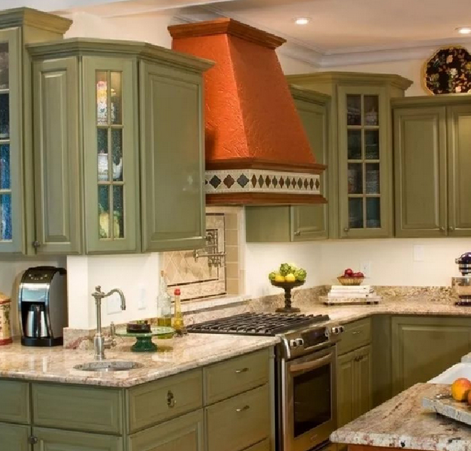 Наверное, лучше однотонные выбирать? Кроме зеленоватых и голубоватых оттенков в тон кухни ничего на ум не приходит. Но тогда не будет ли сливаться?