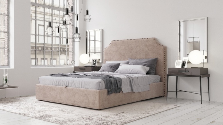 у них с пожим на изголовье что на заказ у вас, а ещё такое есть у сонберри цена выше перрино у них, каталог тканей есть на сайте, клепки разного размера: https://sonberry.ru/catalog/krovati-bez-podemnogo-mekhanizma/krovat_mozart_motsart/