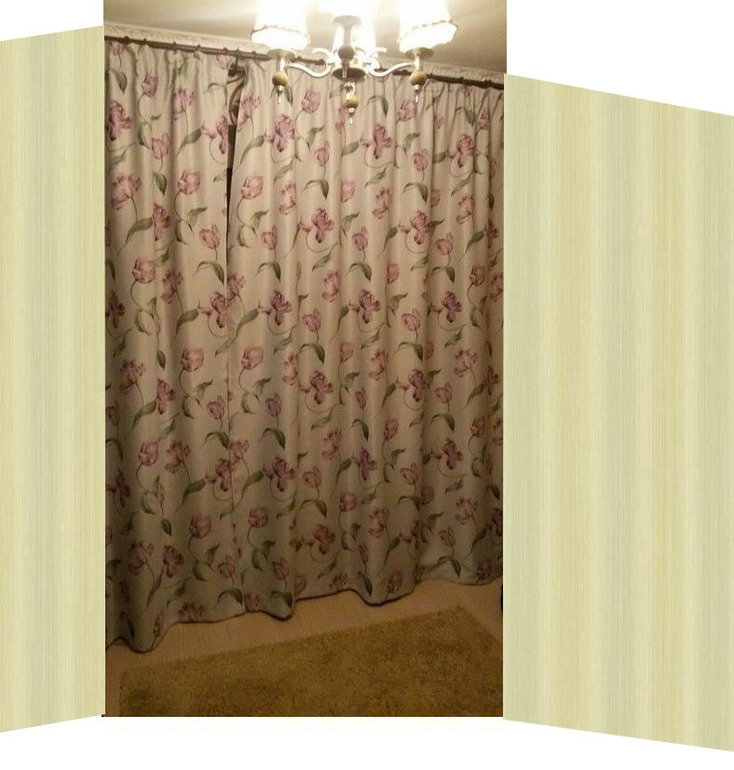 Девочки помогите пожалуйста))))) Нужно поклеить комнату 12,5 метров(гостизная). Низнаю какие обои подобрать и пол. Шторы вот такие. Диван коричневый.