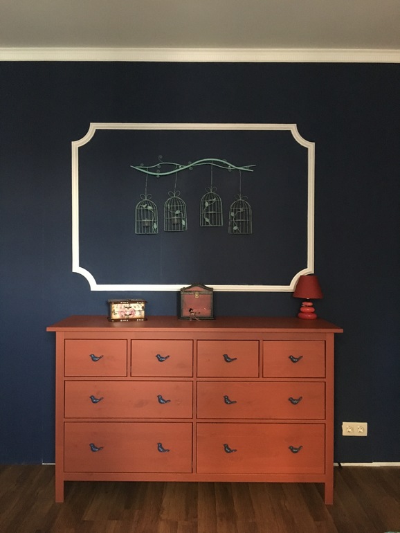 Вот синяя стена с косяком... если приглядываться и свет из окна на неё яркий днём падает, то можно увидеть даже стык 0,5мм ... я была в шоке и истерике, когда увидела, а теперь даже не замечаю😂