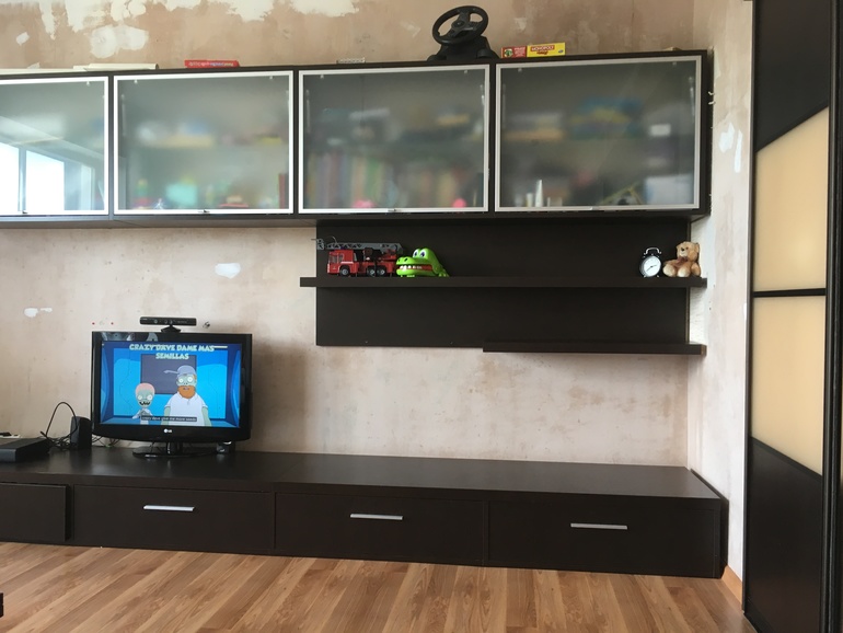 Если сделать геометрию за телевизором и шкафами - как раз уместно будет, добавит сложности и интереса в интерьер, но на вкус и цвет все фломастеры разные;)