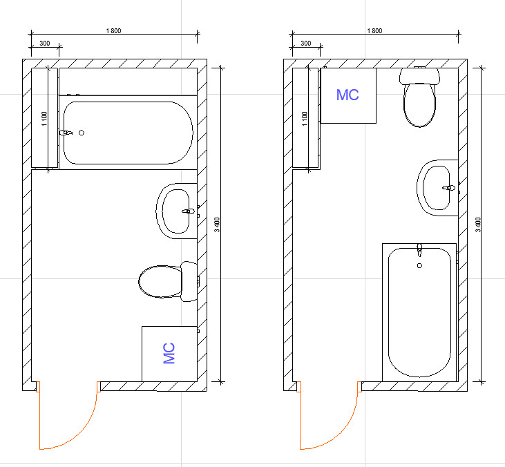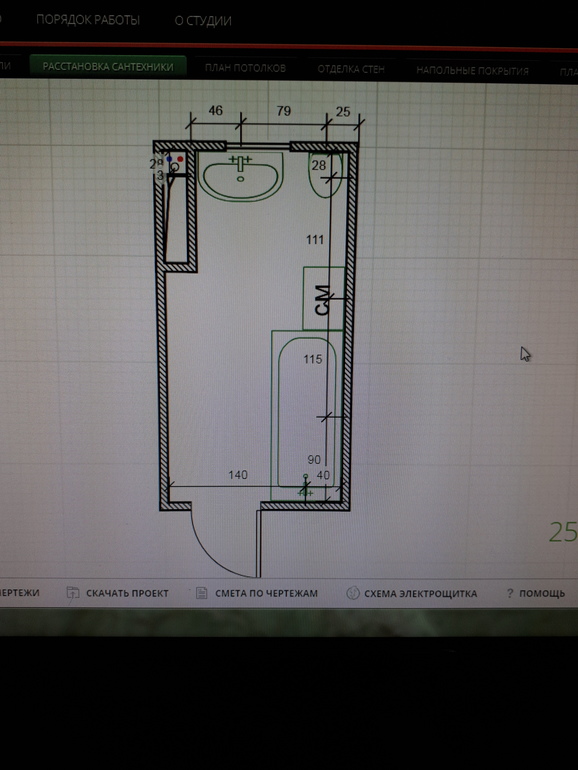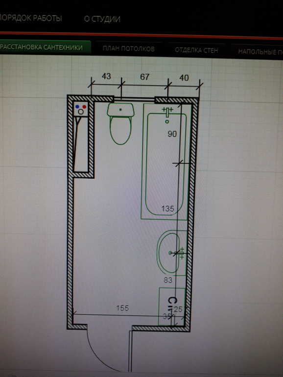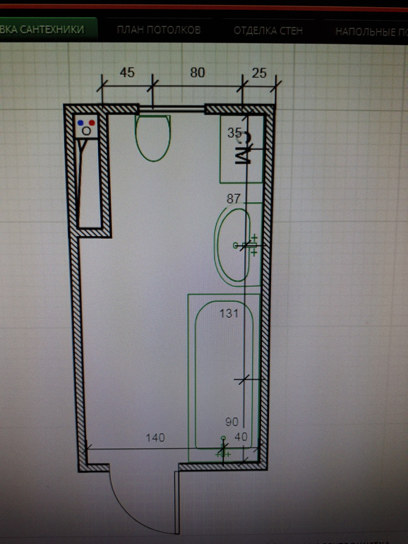 Слева унитаз-проблема в прокладке трубы. Будет 2 поворота,что сантехники не одобряют. Муж категорически не хочет кабину. Ему принципиально нужна ванна.