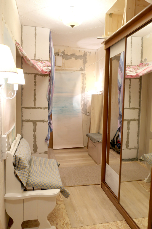 Надо было делать, как изначально планировала - стенку из пеноблоков, и из старого наполнения (штанга, полки, ящики и т.д. соорудить новый шкаф с новыми дверями во всю высоту, блин!
