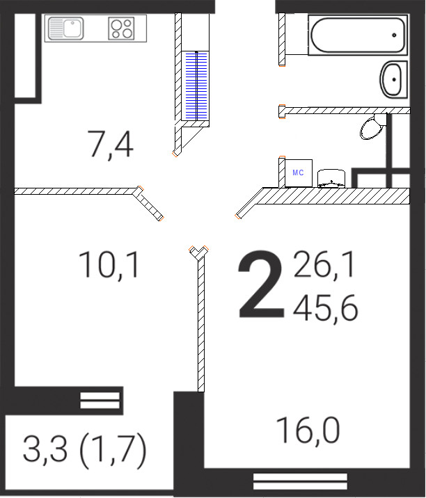 Сейчас смущает кухня . Она проходная и вент стояк занимает пол стены ( и судя по фотографиям из других домов чуда не будет ) предположительно 1.5м в длину и 40 см в ширину. По приблизительным размерам смогла вписать прямой гарнитур 2.5 м