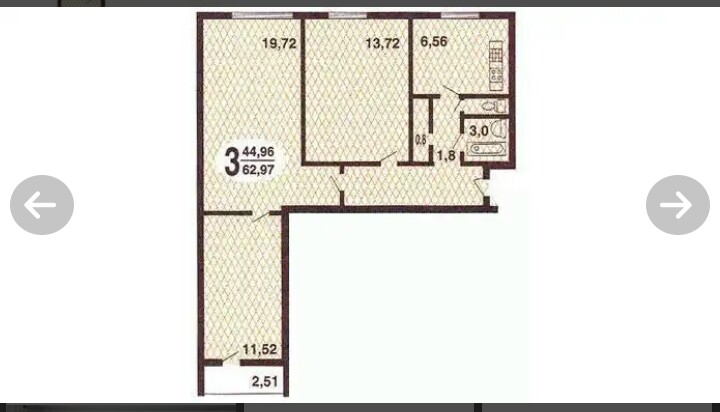 У моей сестры сейчас планировка, как на плане ниже - только квадратов побольше. Они просто в самой большой комнате организовали гостинная+кухня, а на место кухни перенести спальню