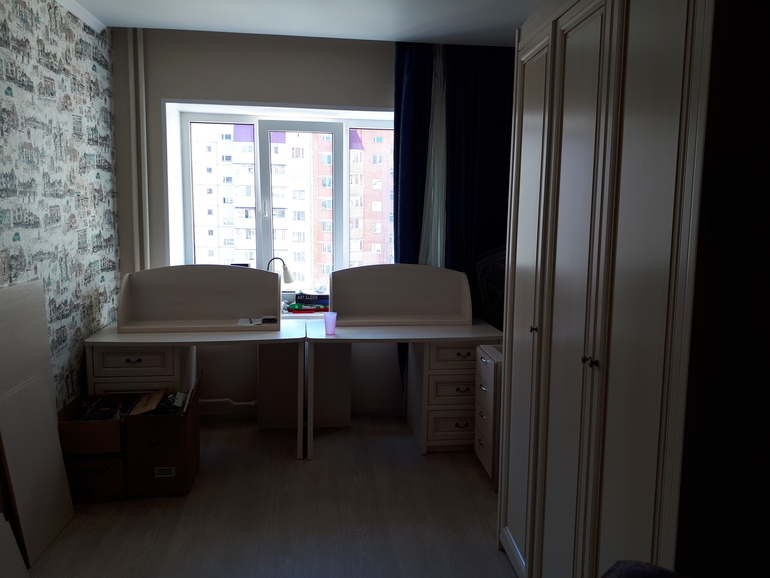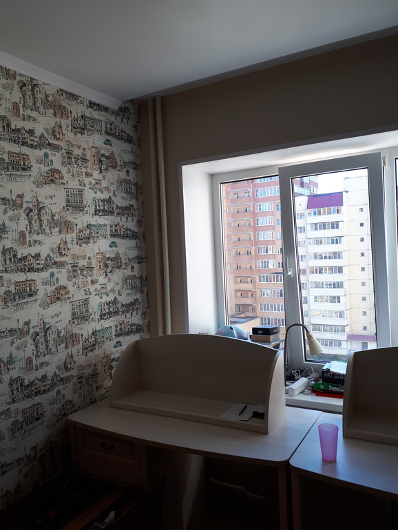 Декор окон. Текстиль. Жалюзи.Добрый день! Буду благодарна за любые рекомендации по оформлению окна (цвет и конфигурация штор), а если есть представление по покрывалам, то тоже посоветуйте) комната детская для мальчиков, пока что в ней разгром, потому как привезли только одну кровать из двух и матрасы на 10 см короче, чем нужно, но шторы и покрывала хочу уже заказать... комната 18м2, мебель классическая, обои и ковер прикрепляю, потолок натяжной, карниз в нише, столы будут стоять вдоль окна, поэтому штора видится короткая, солнце в комнате до обеда, потом тень. Над каждым столом на стене будет еще полка, это они лежат на столах.