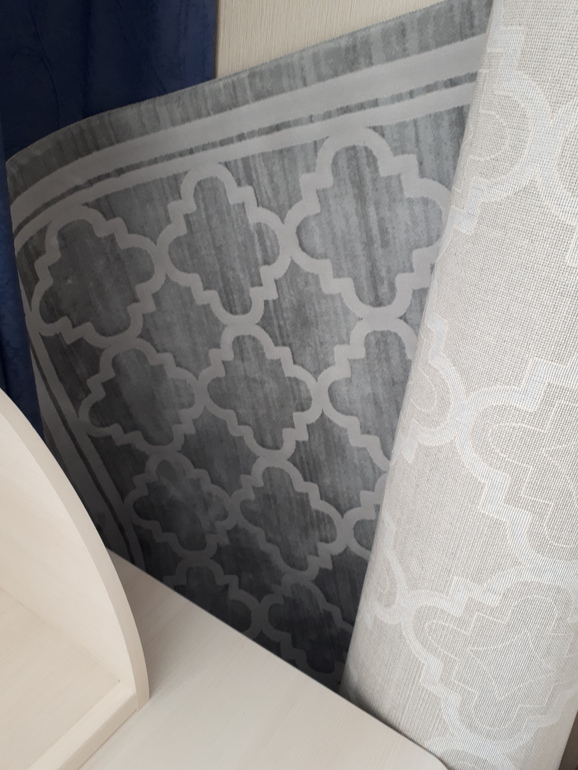 У нас такие же обои. Мы вот так сделали. Комната у нас игровая пока что. Тоже хотела сначала сделать в цвет машинки, но по мне так слишко зелено будет, и я решила отталкиваться от бежевого цвета, там где дома нарисованы есть оттенок, я прям взяла кусок обоев и ходила ткань прикладывала.2 фото больше цвкт передает