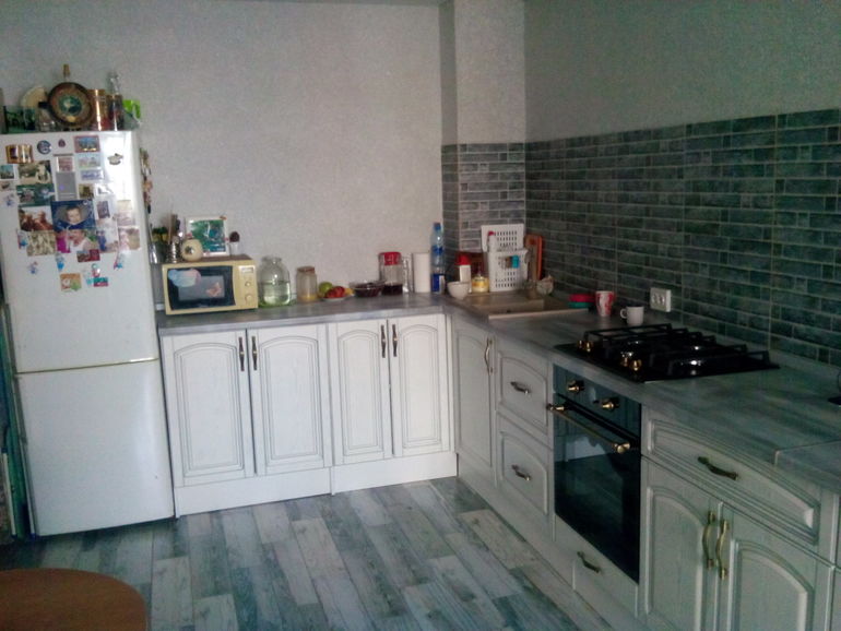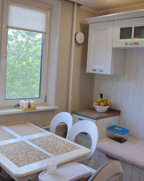 Вчера были у друзей в доме, кухня буквой "п", очень компактная, сверху вверх на метр примерно идет плитка, потом обои, никаких верхних шкафов