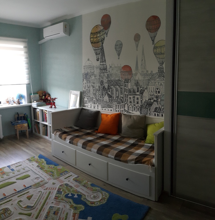 Наша кушетка, по мне вполне мальчишечья (это комната сына ). Мы брали с двумя матрасами икеевскими, не помню какие, тестировали их там и выбирали, здесь один матрас, мне с двумя не нравится как смотрится кушетка.