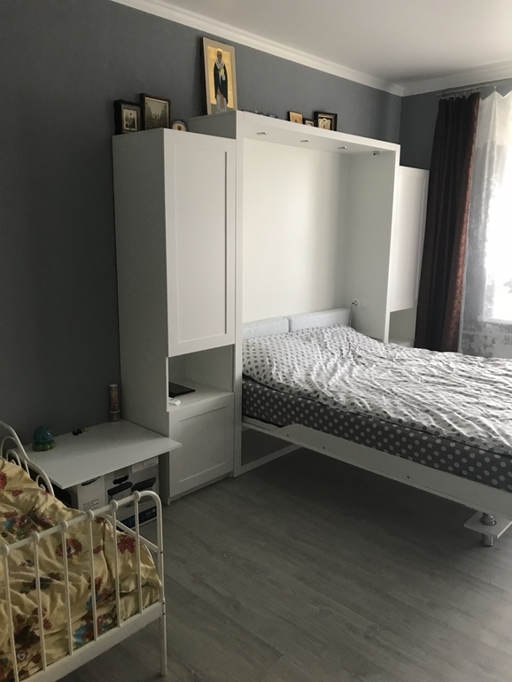 А, все, теперь увидела что кровать-трансформер. Сначала не обратила внимание. мы с мужем тоже в гостиной обитаем, две остальные комнаты отдали детям.