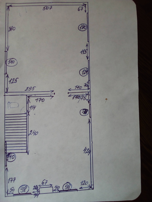 Фото замеров прилагаю. Те замеры, которые отмечены в кружках, это окна. Ещё в проходной отмечен венткороб, это тоже константа.